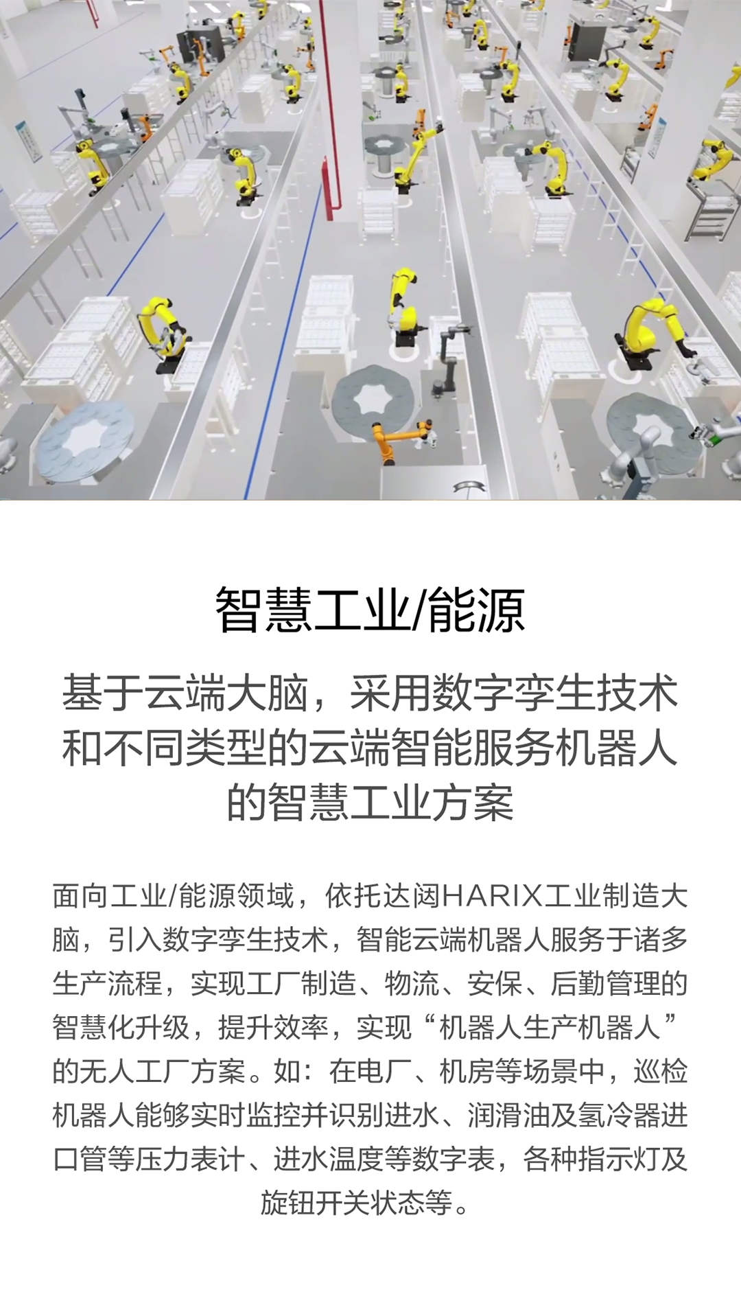 面向工业/能源领域,依托galaxy银河HARIX工业制造大脑,引入数字孪生技术,智能云